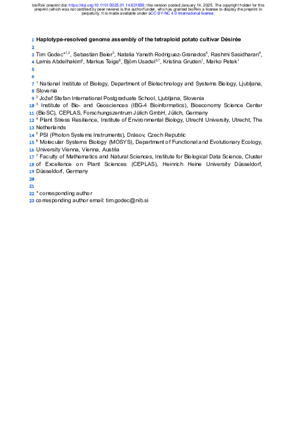 Tim Godec, Sebastian Beier, Natalia Yaneth Rodriguez-Granados, Rashmi Sasidharan, Lamis Abdelhakim, Markus Teige, Björn Usadel, Kristina Gruden, Marko Petek